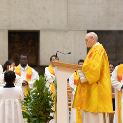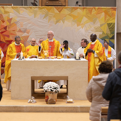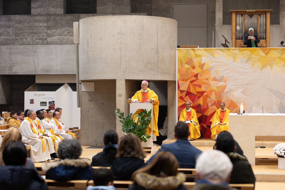Heilige Messe der Weltkirche-Tagung Encuentro 2023 mit Gästen aus den Partnerdiözesen aus Ecuador, Kenia und den Philippinen durch Weihbischof Scharl.